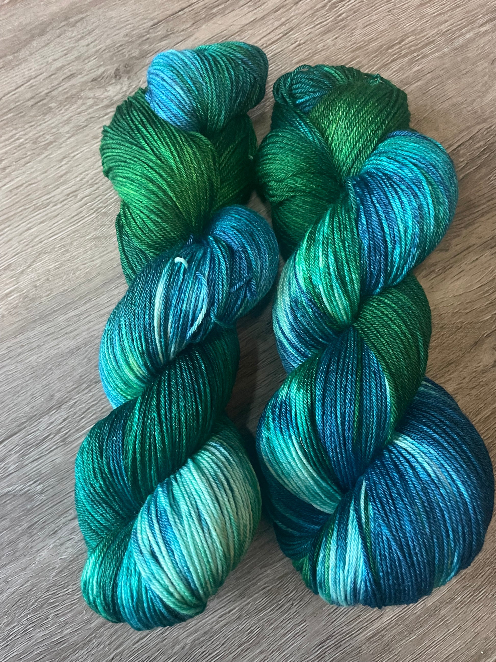 Cool blues meet vibrant greens in Climate, a colorway inspired by the shifting moods of our planet. From deep ocean currents to lush forest canopies, each strand captures the beauty — and fragility — of the natural world.