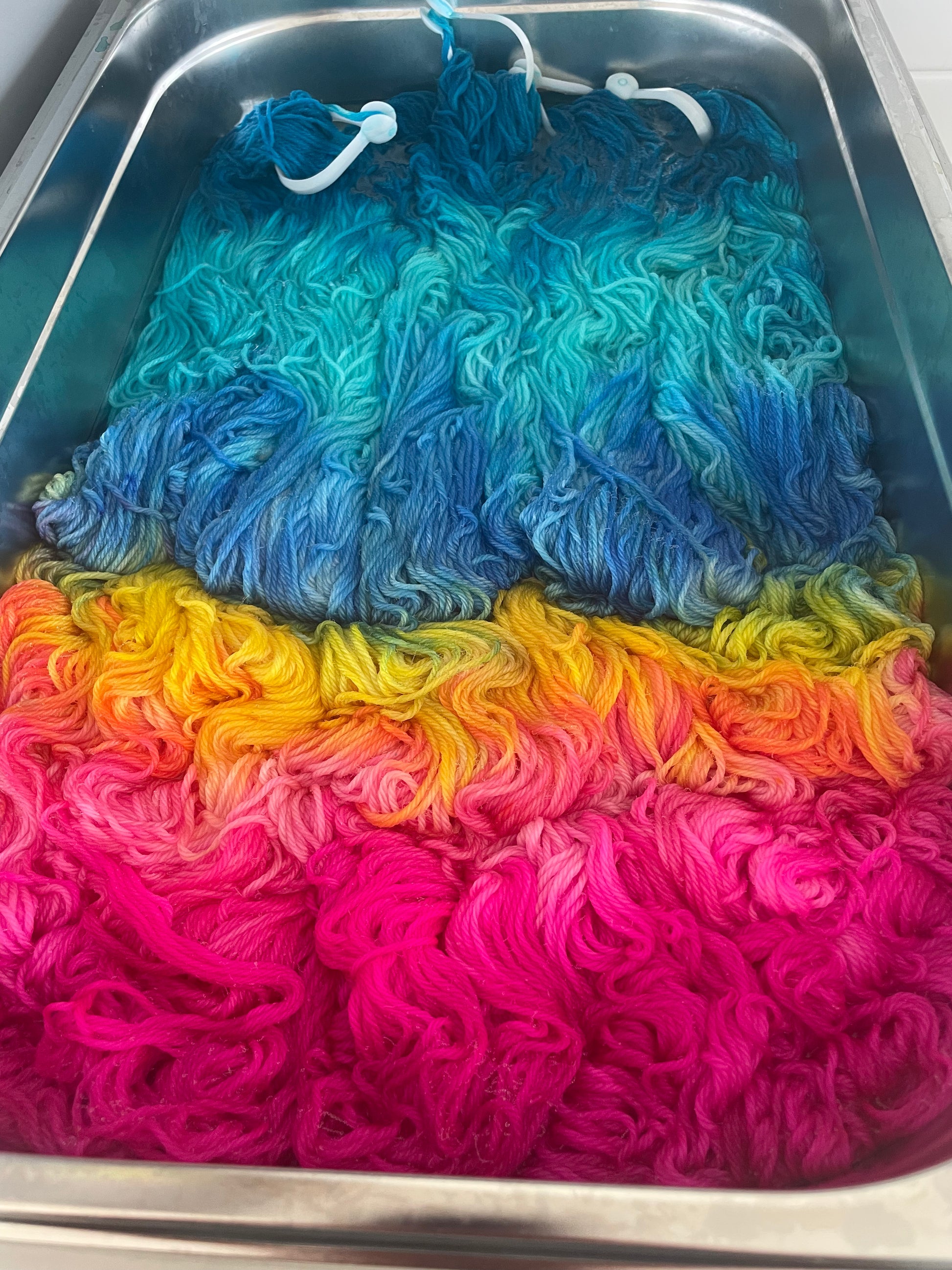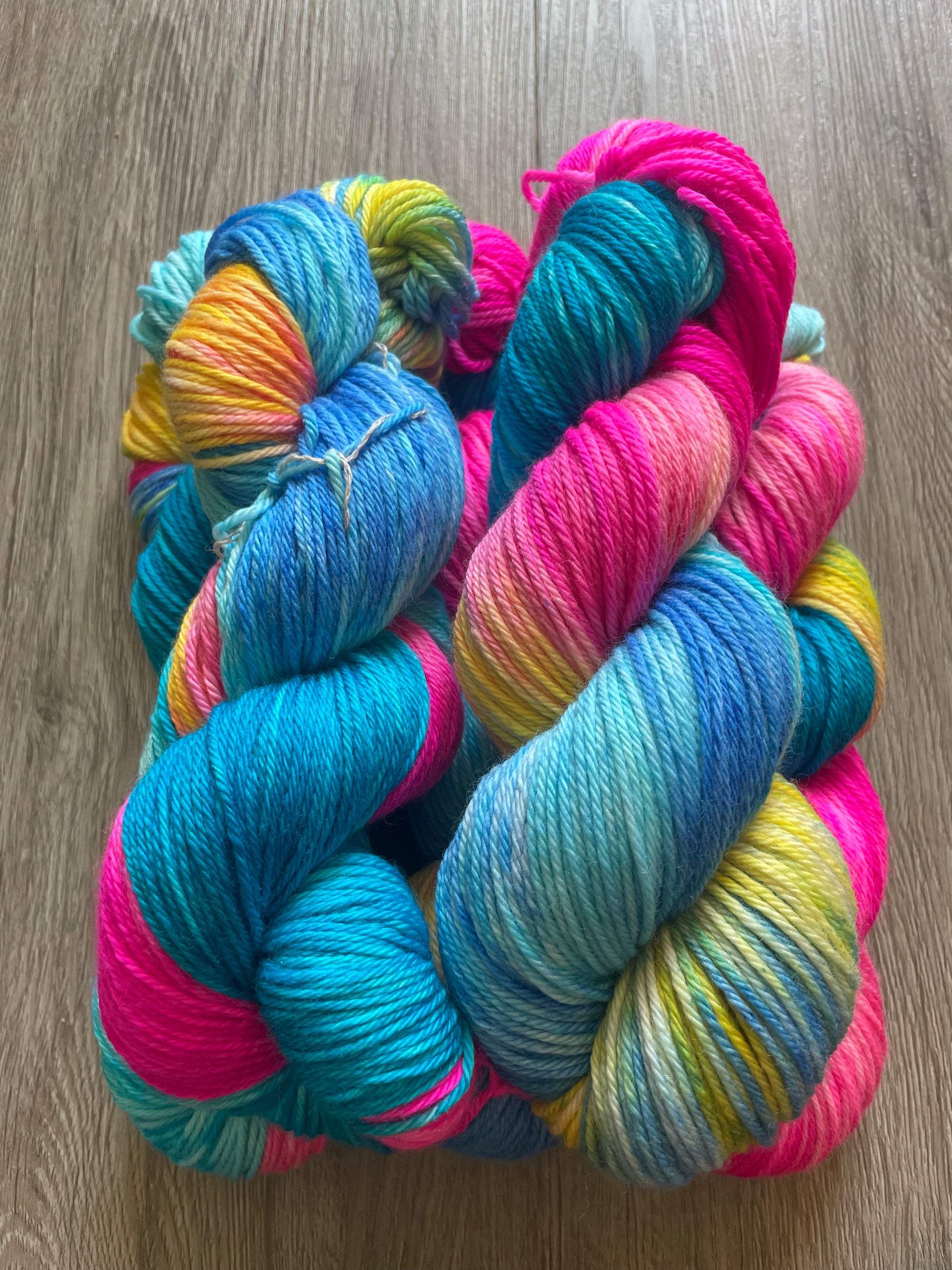 Featuring a punchy mix of fuchsia, hot pink, golden yellow, electric blue, and vivid turquoise, this yarn celebrates your inner unicorn in full technicolour. It’s like a sugar rush on a rainbow rollercoaster — loud, proud, and ready to stand out in every stitch.