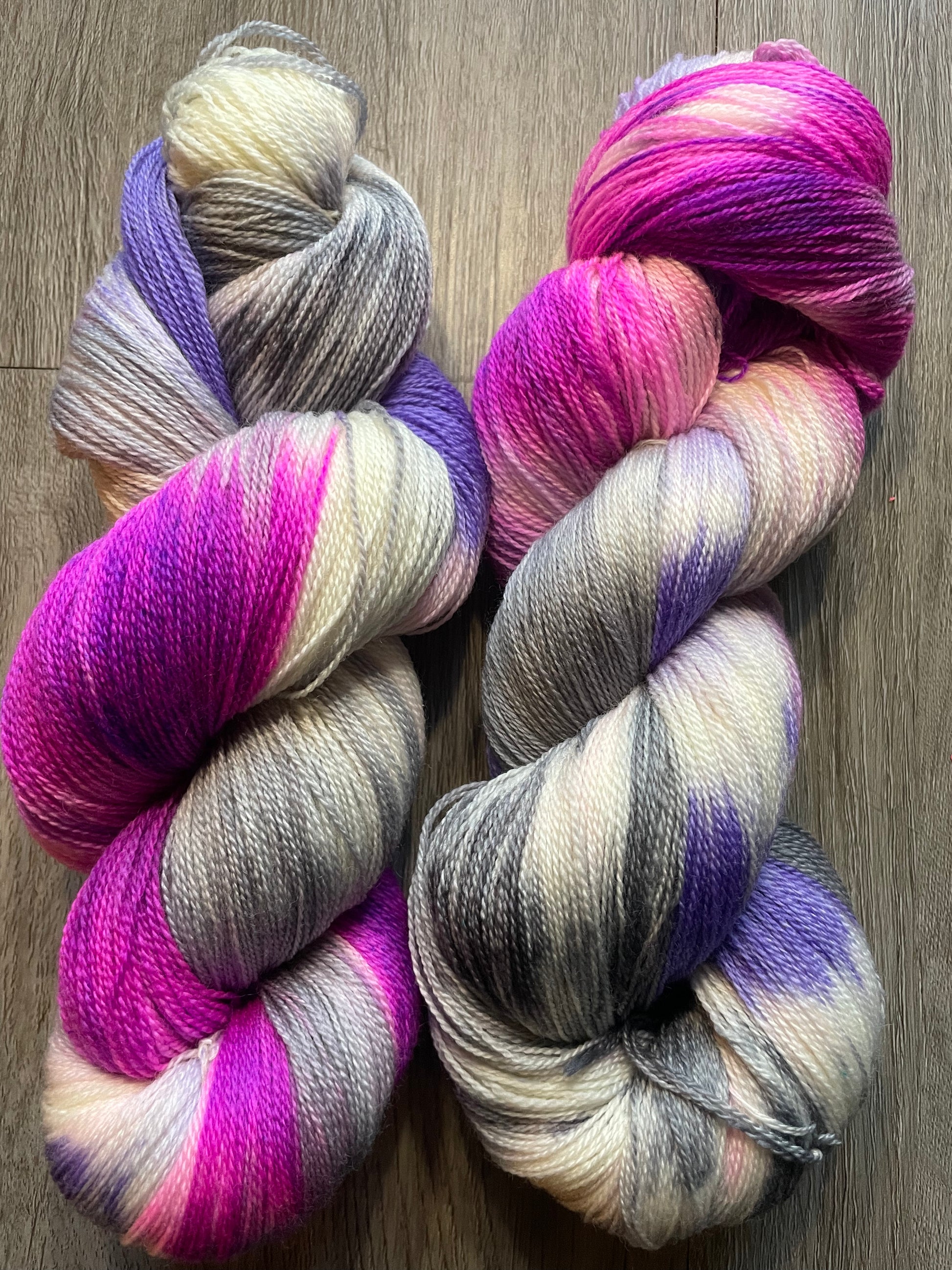 This yarn isn’t here to behave. Pricks and Giggles is a seductive swirl of moody mauves, bruised violets, and flirty fuchsia, designed for fibre artists who like a little sass with their stitches. Whether you’re knitting in bed or crocheting with wine in hand (no judgment), this colourway brings a playful bite to every project.