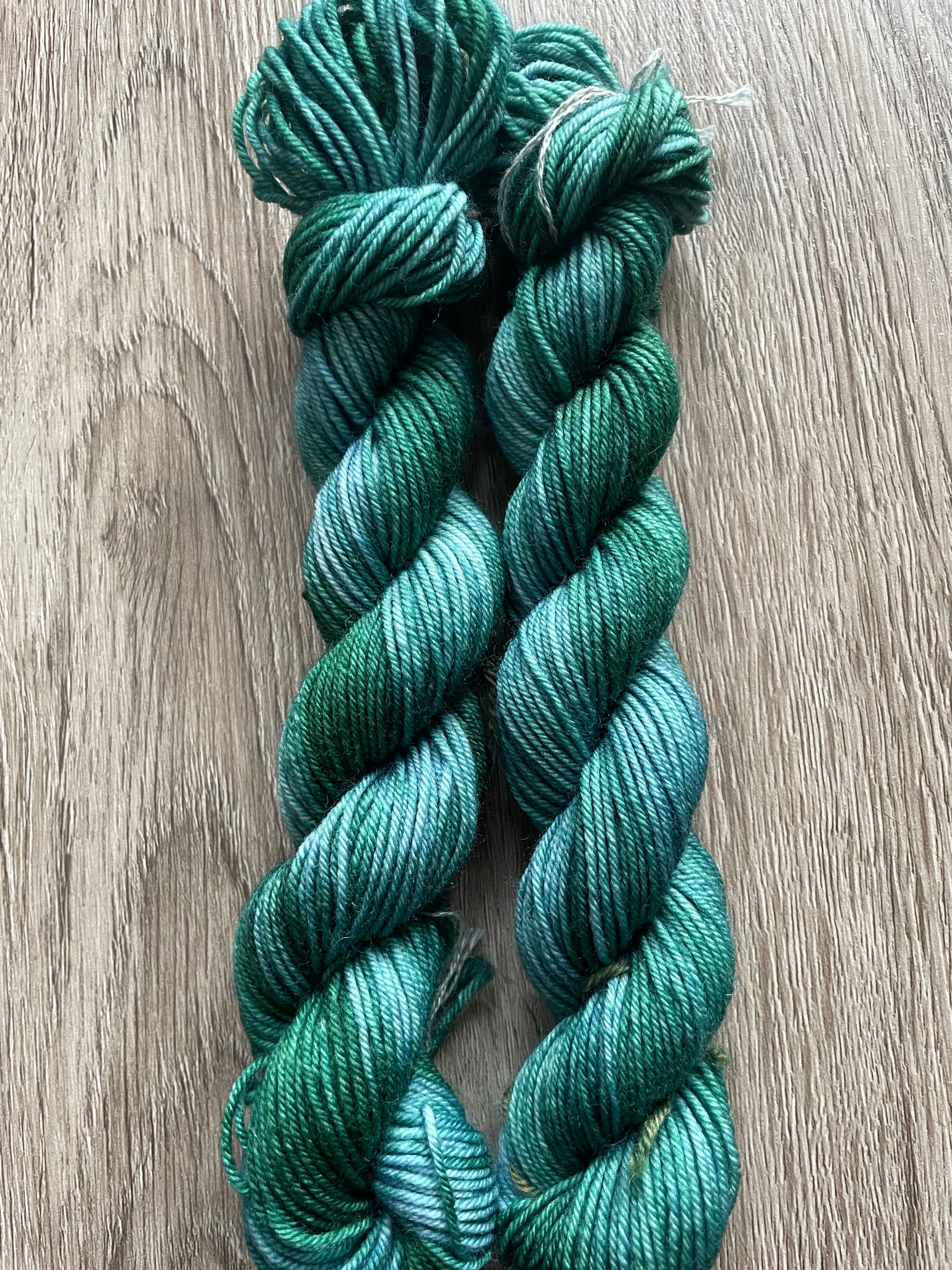 Dive into the tranquil depths of the ocean with our "Seagrass" colourway. This yarn captures the shifting light and shadow of a hidden kelp forest, with rich teals and deep greens flowing into each other like a gentle current. Perfect for the cosy toes of socks that feels like a beachside breeze or a hat that holds all the secrets of the sea. It's an underwater adventure, no snorkel required!