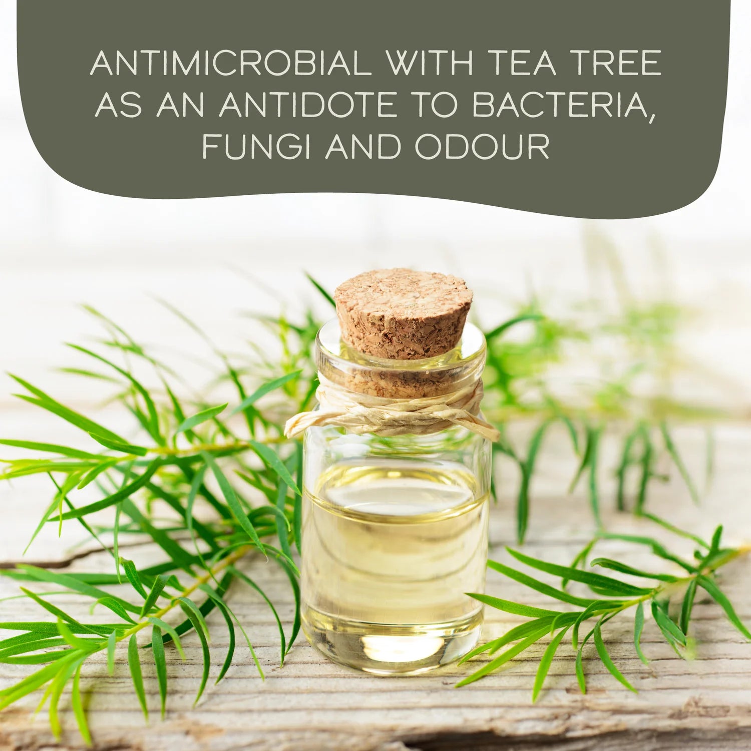 Tea tree oil has a crisp and clean note which subtly enhances your spirits as you go about your day feeling fresh from head to toe.