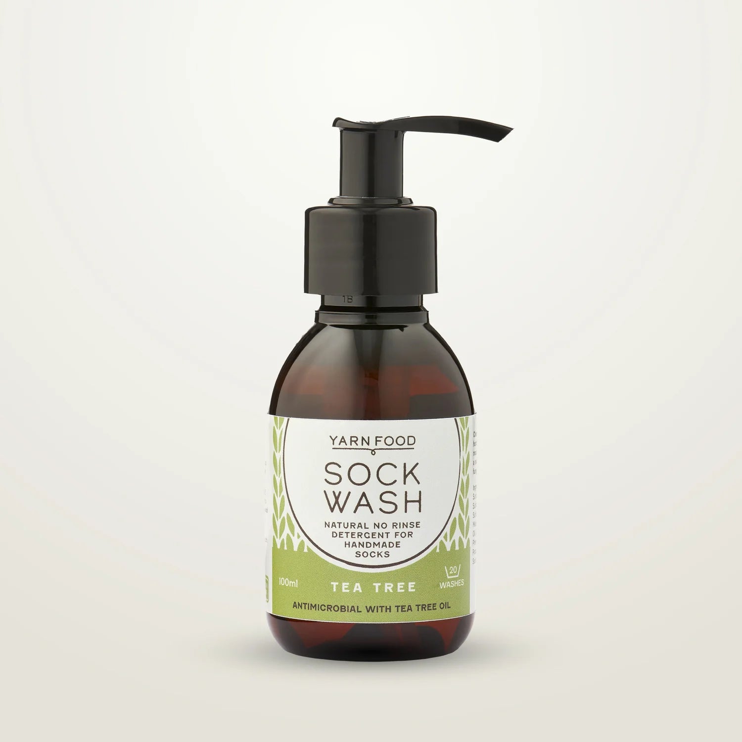 Fill a sink or basin with one gallon, or 4.5 litres, of cold or lukewarm water. Add 3 pumps (5 ml) of Yarn Food Sock Wash and soak your socks for 20 minutes. Gently remove from the water, squeeze without wringing, and roll up in a towel to squeeze the remaining water out. Lay out flat or block to dry.